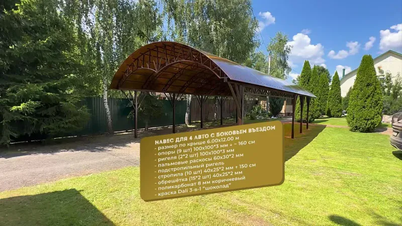 Но главный эффект от просмотра видеогалереи – окончательный внешний вид навеса из поликарбоната на конкретном придомовом участке. Это поможет визуализировать будущую конструкцию на своей территории.